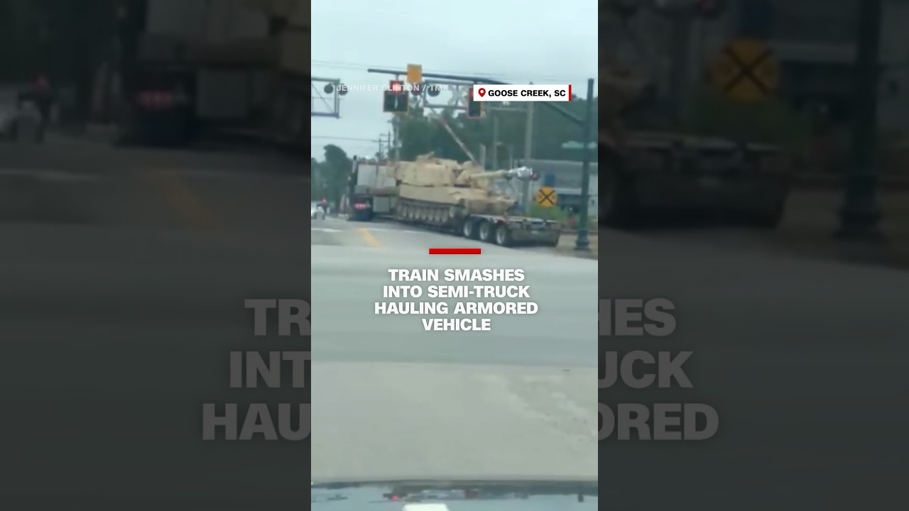 Drivers watch as a train smashes into a semi-truck hauling an armored vehicle September 13, 2024 admin Facebook Twitter Pinterest CNNFri, September 13, 2024 2:55pmURL:Embed: Facebook Twitter Pinterest