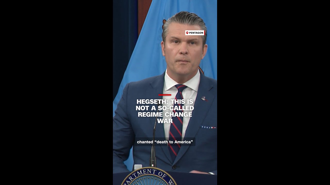 US Defense Secretary Pete Hegseth claimed at a press conference that the US strikes on Iran are not a “regime change war.” President Donald Trump has pushed for regime change in his remarks after the strikes and encouraged the Iranian people to “seize control of your destiny.” #cnn #news