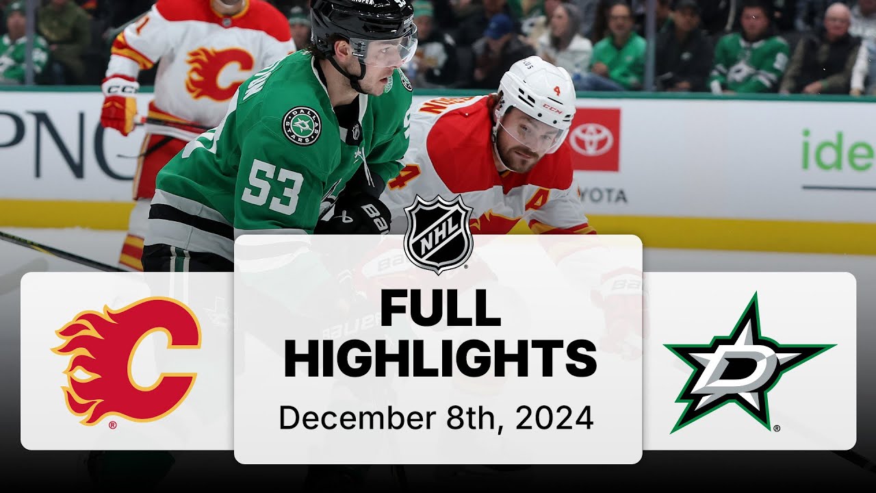 Watch full game highlights from the matchup between the Calgary Flames and the Dallas Stars on December 08, 2024, condensing all the action into a 10-minute recap