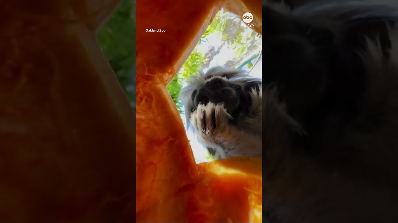 The Oakland Zoo provided a unique view of a cotton-top tamarin monkey named Alberto getting into the Halloween season by chowing down on a pumpkin.